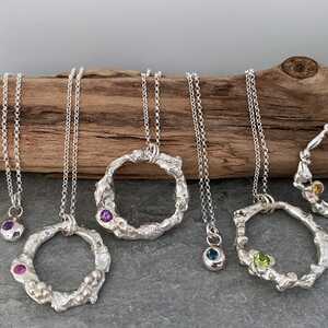 As the texture is applied by hand every piece of jewellery will be similar but unique. Adding gemstones to some of these pieces gives more individuality, if you'd like a stone that isn't featured please ask.