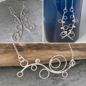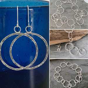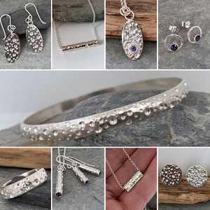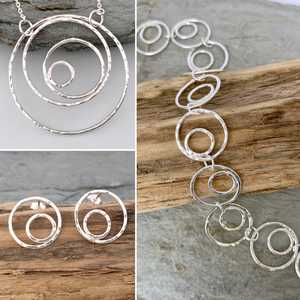 When I first started making silver jewellery I didn’t intend to design collections but looking back I unconsciously made pieces that were linked together. Now I enjoy coming up with a new design then developing that into a collection of pieces that match or co-ordinate, this can then be a limited edition collection like my seashell pieces or one that keeps evolving like the Eccentric circles collection. I’m also happy to discuss commissions if you like the overall design of a collection but want a bespoke piece.
