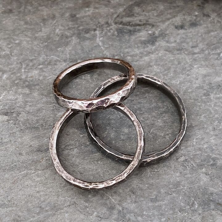 Solid silver ring band with a heavily hammered texture for ultimate sparkle.